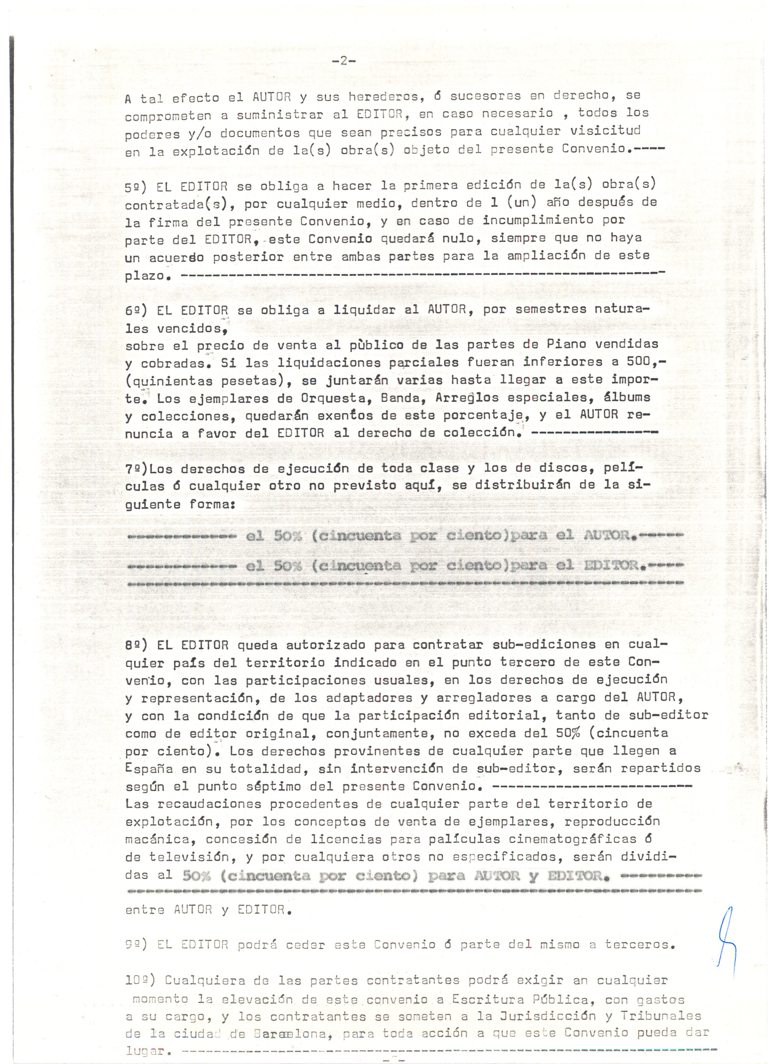 1974, octubre al 1994, gener, 27. Barcelona. Contractes T.V. Cèdules. Carpeta. 16 fulls de contractes amb TIENTO EDITORA; 123 fulls mecanoscrits de contractes per a cinema i T.V.