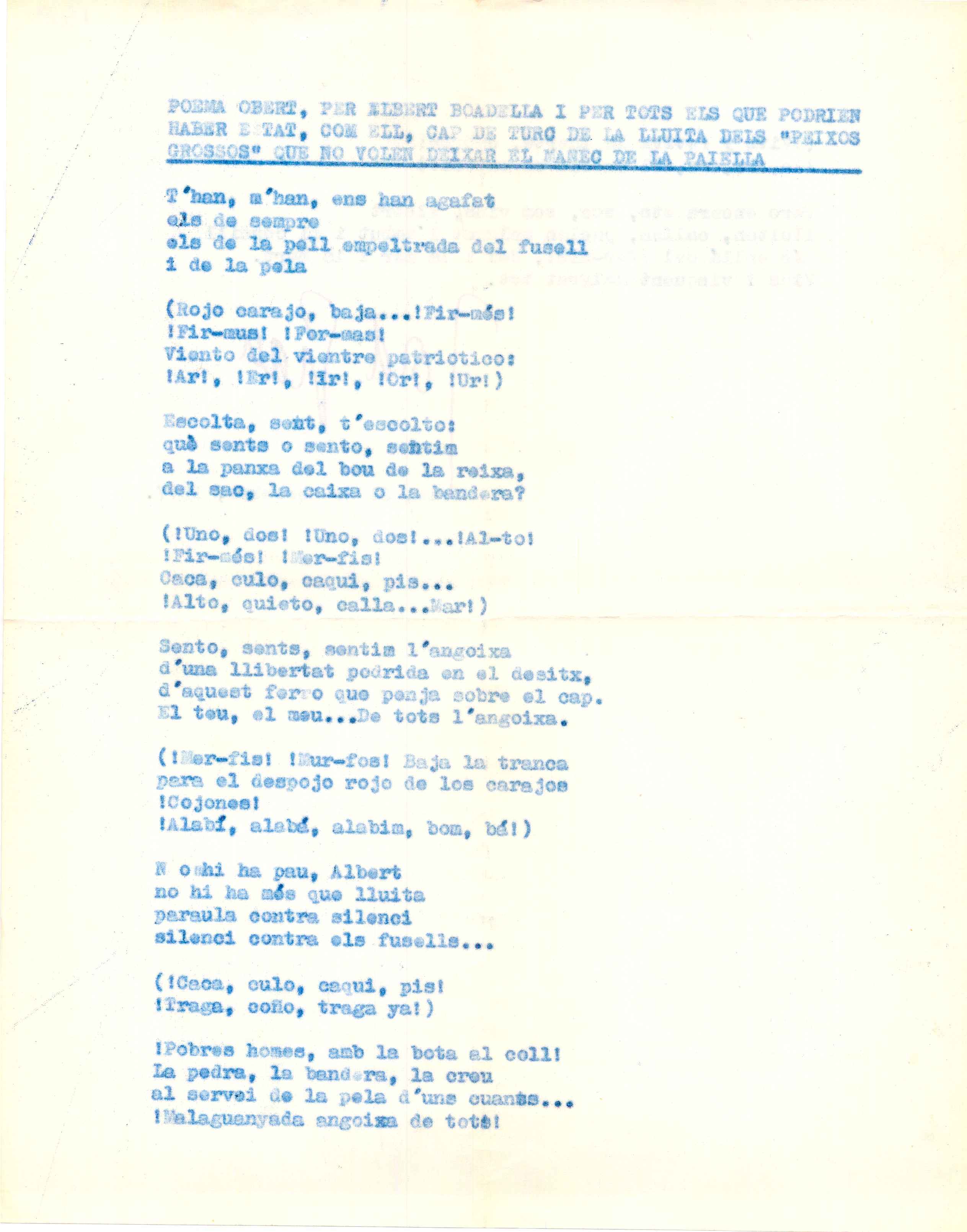 1977, desembre, 21. Madrid. Carta mecanoscrita. 2 fulls. De Jordi Grau, la carta fetxada el 13 de març del 1978. Albert Boadella.