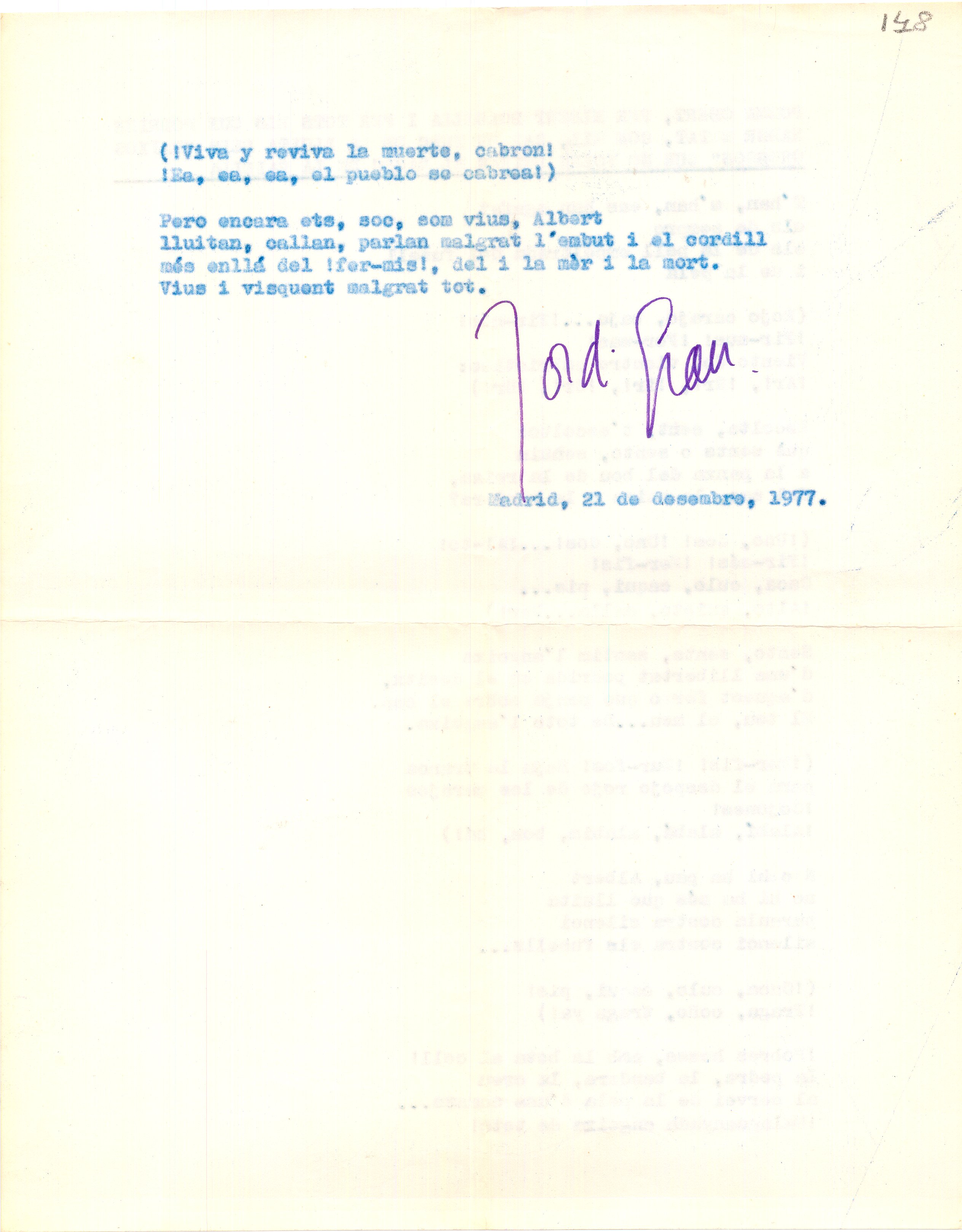 1977, desembre, 21. Madrid. Carta mecanoscrita. 2 fulls. De Jordi Grau, la carta fetxada el 13 de març del 1978. Albert Boadella.