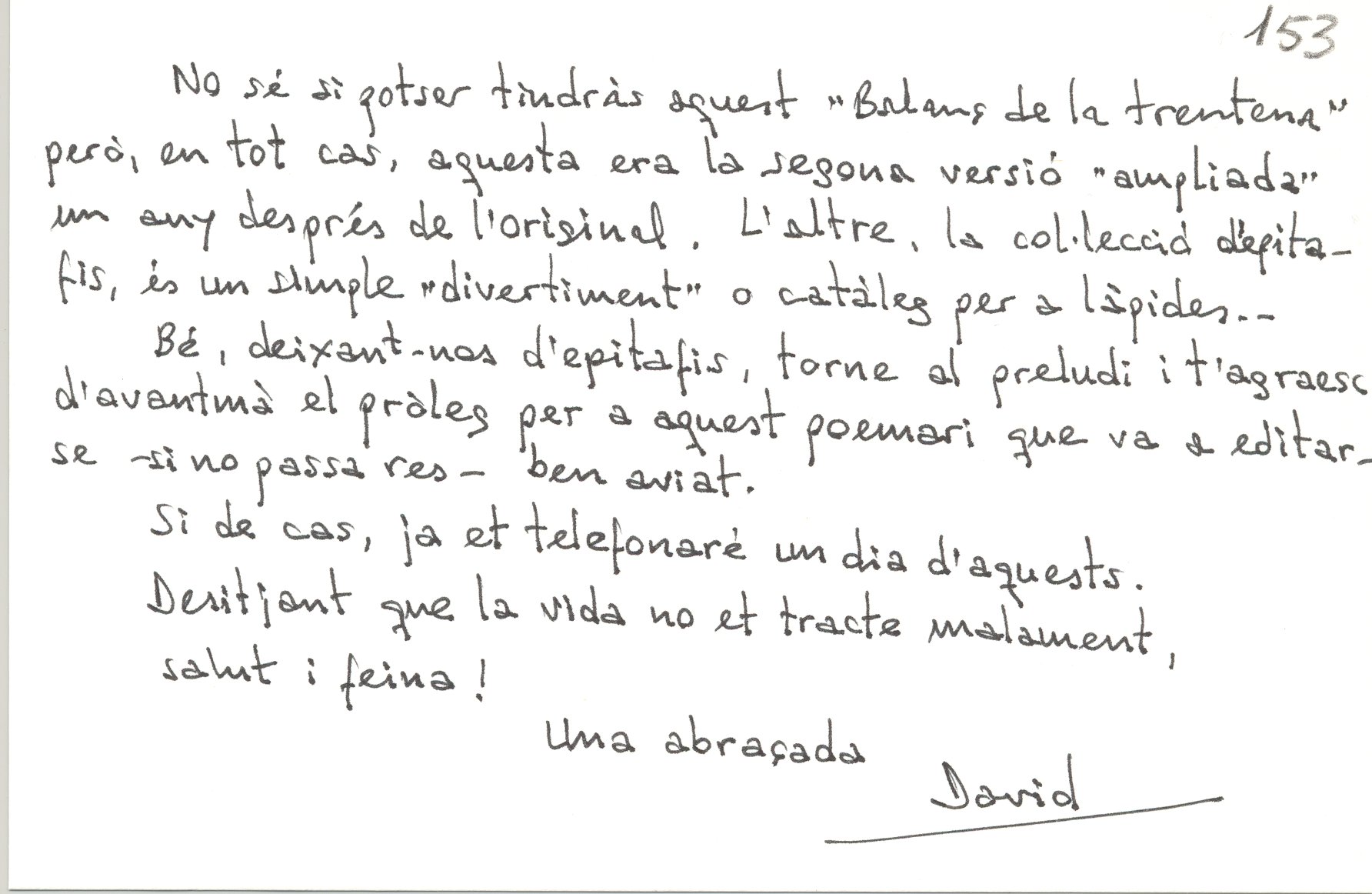 1989, novembre, 27. Ontinyent. Carta manuscrita. 1 full. De David.