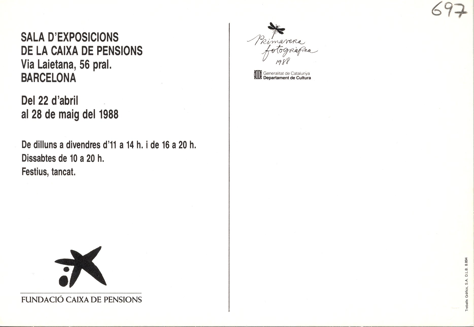 1988, abril, 22. Postal mecanoscrita. Invitació de La Caixa de Pensions a l’exposició Primavera Fotogràfica 1988.