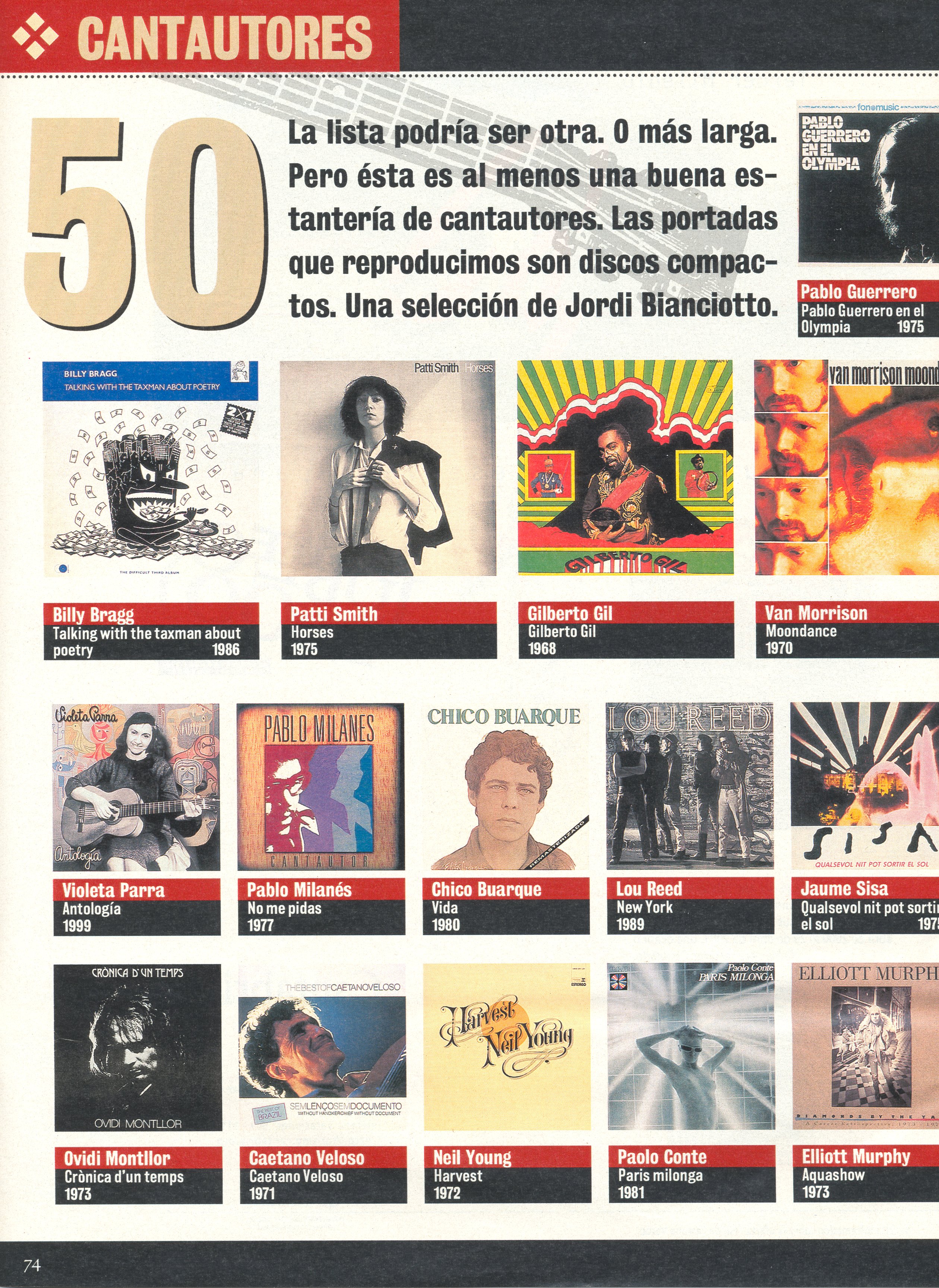 2000, octubre, 1. Ciudad. Portada de periòdic, anunci de la revista dominical. A més inclou poster d’O. M. i especial cantautors del dominical.