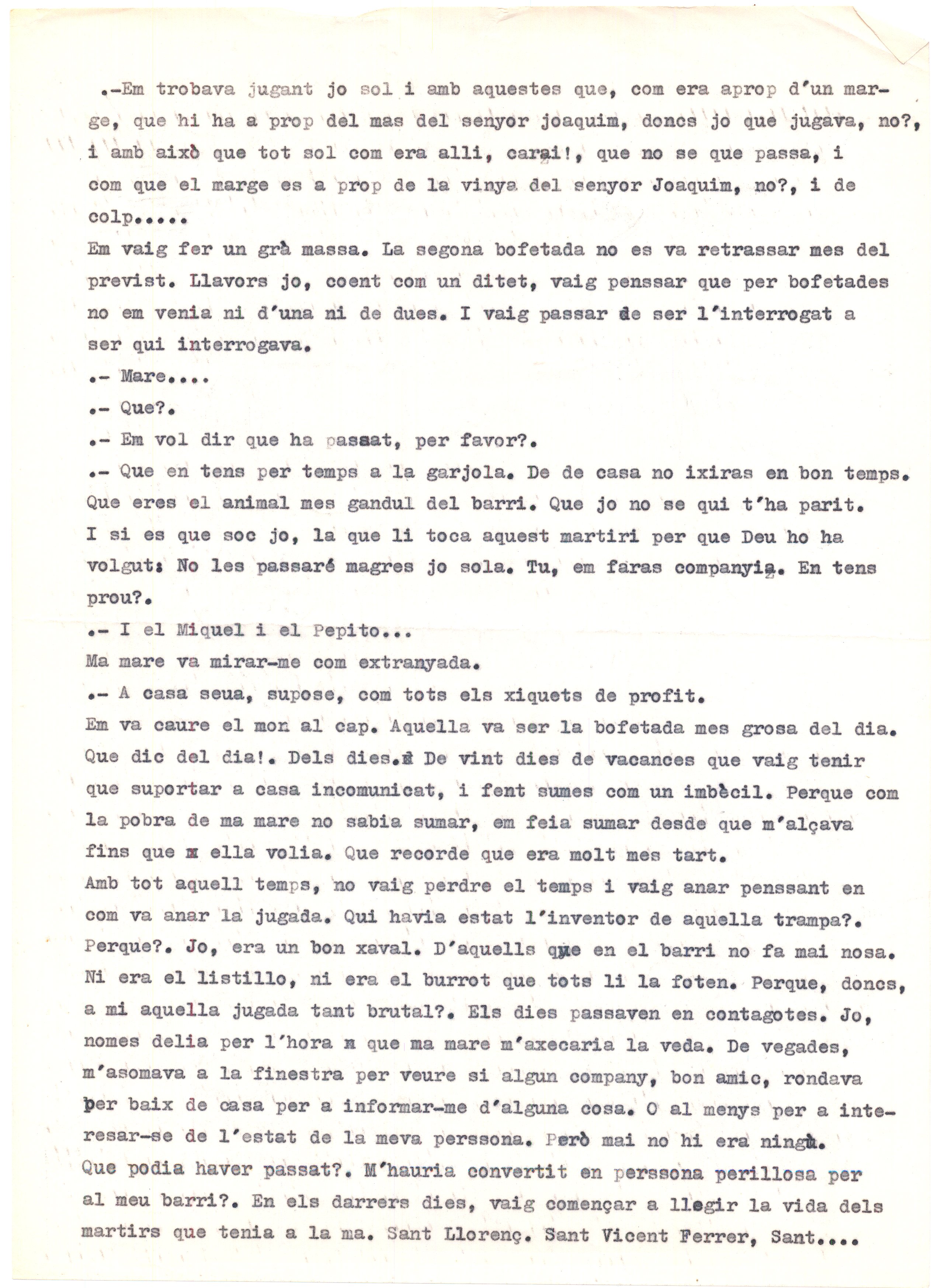 s.d. Films de Flams O. M. presenta Fil i agulla. Mecanoscrit. 16 fulls. Carpeta. Relat de dos capítols i un altre: Una de calamars.