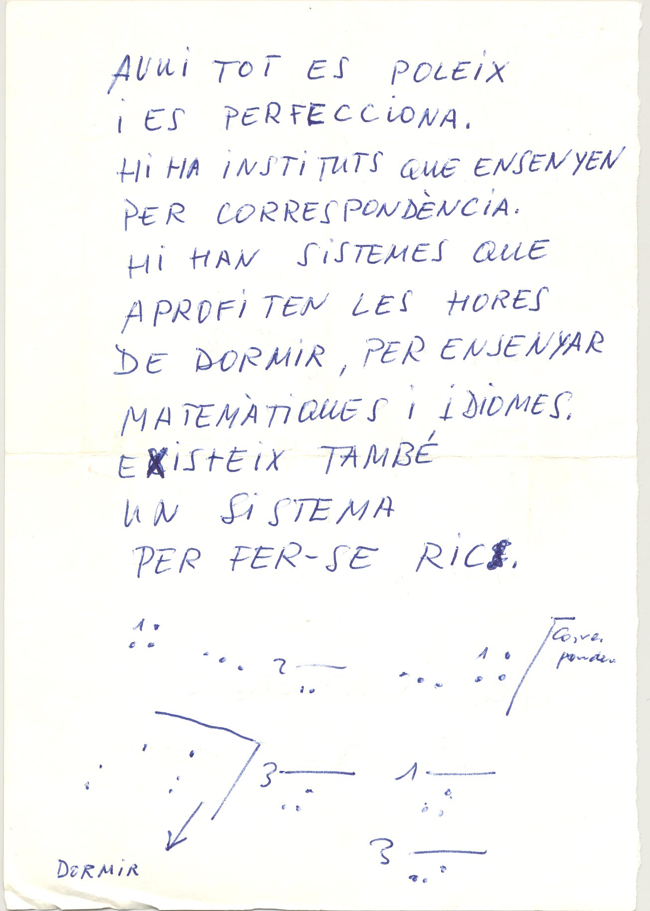 Avuí tot es poleix… Manuscrit. 1 full. Carpeta. Poesia i anotacions musicals.